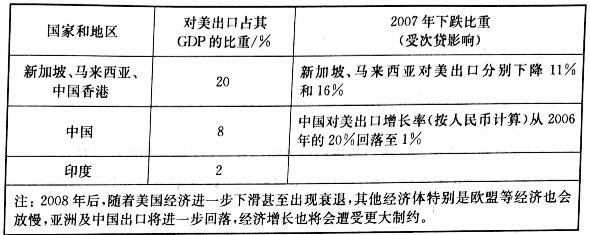 (2)危機前亞洲出口即受美次貸危機影響情況危機發(fā)生后亞洲眾多國家被 動承受了美國匯率波動,進出口跨境貿(mào)易電商受到直接影響。中國作為 美國最大債務國,美元資產(chǎn)大幅度縮水。在美亞跨境貿(mào)易電商關(guān)系中,美國越來越傾向于作 為一個消費國,諸多領域與其他國家出現(xiàn)單向產(chǎn)業(yè)聯(lián)系,并且由于危機打擊其進口 消費能力受到巨大挫傷。 第一,發(fā)達國家美國:進口消費跌至10年來最低點。美 國經(jīng)濟增長的沖擊很大,最大損失估計量為美國GDP的2.2%。 第二,亞洲國家出口對美國具依賴性:美國成為亞洲主要消費國,單向產(chǎn)業(yè)聯(lián) 系明顯。亞洲有很多國家和地區(qū)的出口在較大程度上對美國具有依賴性。亞洲部 分國家和地區(qū)對美出口比重