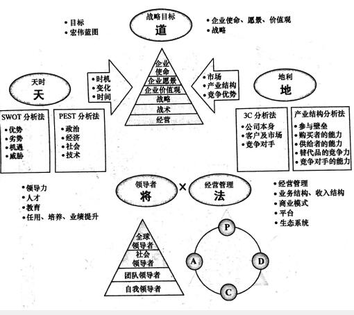當(dāng)然,現(xiàn)代管理學(xué)中也有能實現(xiàn)相同效果的理論框架。但是,沒有哪種理論能夠有效地抓住上述五個要素,并將其視為一個有機(jī)的整體。我認(rèn)為,將五要素法和基于國家、產(chǎn)業(yè)、貨代企業(yè)、人的四層級分析法相結(jié)合,就可以透徹地解析亞馬遜的貨代企業(yè)戰(zhàn)略。首先,我們將道、天、地、將、法這五個要素與貨代企業(yè)經(jīng)營的不同方面一一對應(yīng)起來。